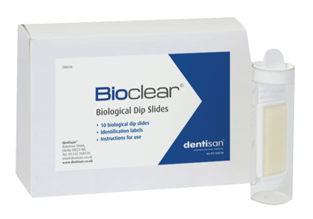 Continually monitor input and output water quality with dental dip slides. These easy-to-use biological dip slides identify microbial contamination of water. Simple, highly visual red spots indicate contamination and highlight where in your practices waterlines the contamination is most prominent. HTM 01-05 compliant. Pack of 10 dip slides.