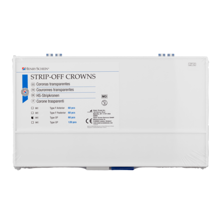 Transparent strip-off crowns for immediate acrylic or composite crown restorations.