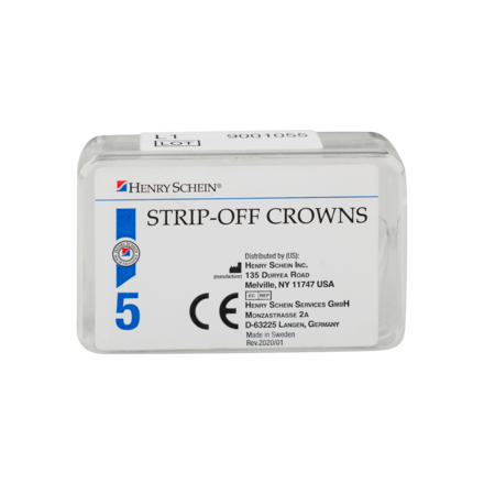 Transparent strip-off crowns for immediate acrylic or composite crown restorations.
