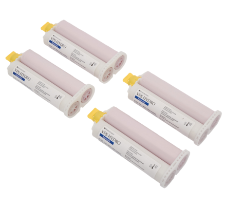 Hydrophilic vinyl polysiloxane wash material in cartridge format. Thixotropic - flows easily under pressure. Superior adhesion between putty and wash. Superb elastic recovery from deformation. High tear resistance. Total working time (incl. mixing time): light body regular 2 min; light body fast 1:30 min; regular body 2 min. Time in mouth (minimum): light body regular 3:30 min; light body fast 2:30 min; regular body 3:30 min. Setting time (includes mixing time): light body regular 5:30 min; light body fast 4 min; regular body 5:30 min.
