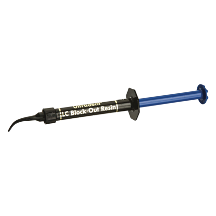 Light-cured block-out resin which provides reservoir space for bleaching and other laboratory procedures, such as model and die repairs. Low viscosity. Blue pigment. Rapidly and efficiently delivered with Black Mini Tips. Not intended for intraoral use.