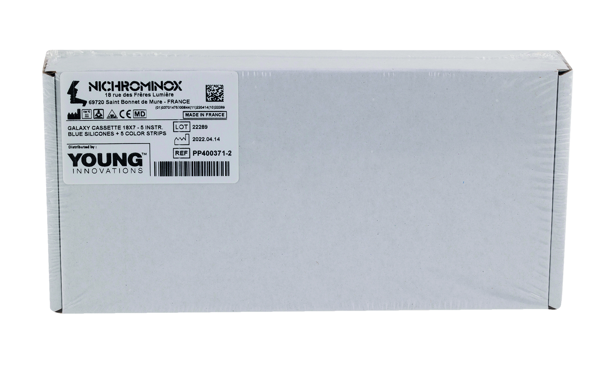 Instruments cassette for 5 instruments. Dimensions: 18.5 x 8 x 3.7cm.