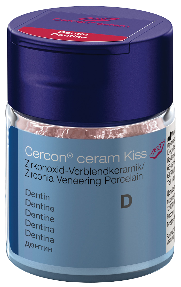 Ceramic veneering material developed specifically for veneering zirconia (Y-TZP) crowns and bridges with a CTE of 10.5 ?m/m · K (25500°C), preferably made of Cercon base or Cercon base ht. Innovative frits for homogenous firing results without edge rounding. Safe to use with close adaptation to the zirconium oxide material. Proven long-term chewing simulator tests. Part of the Cercon smart ceramics system. Paste liners with an emulated formula facilitate simple and safe handling.