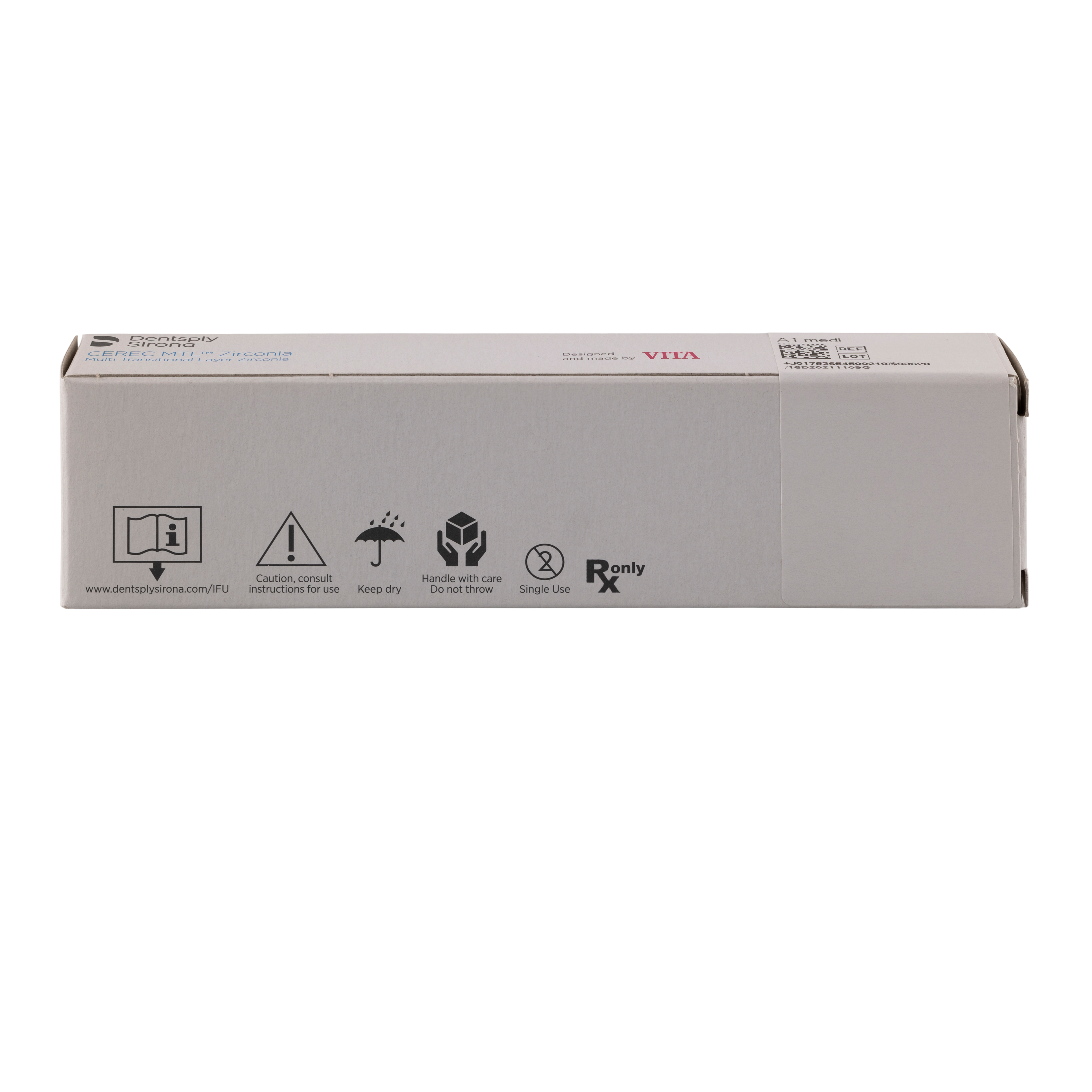 Zirconia blocks providing strong, precise restorations that are highly aesthetic and natural looking. For fully anatomical 3-unit anterior and posterior bridges. Natural multitransitional layer and high shade match. High strength of over 850 Mpa to enable less reduction of the natural tooth. Fast zirconia workflow which is most efficient when using the CEREC Primemill and CEREC SpeedFire. Timesaving and efficient.
