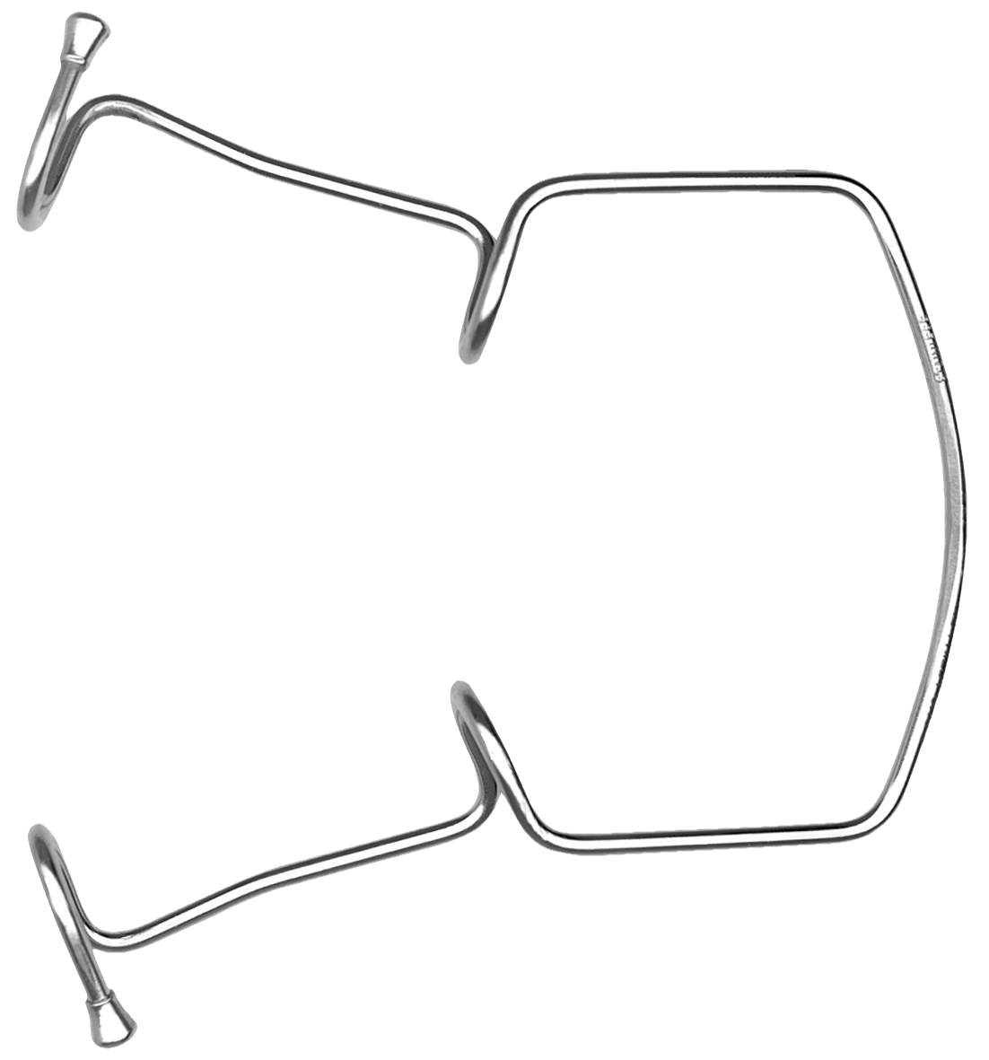 Hands-free retractor used to hold mucoperiosteal flaps, cheeks, lips and tongue away from the surgical area. Made with surgical grade stainless steel.