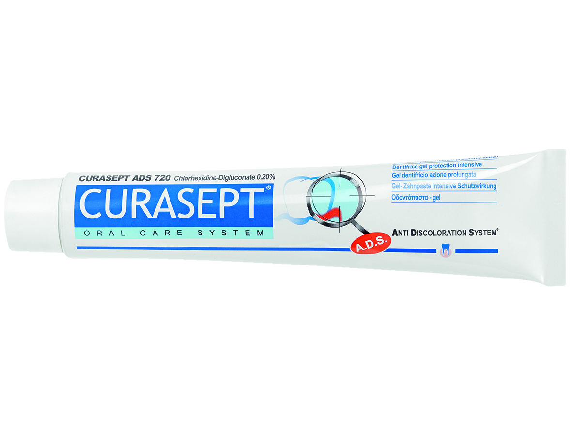 Antibacterial toothpaste ideal when used in conjunction with CURASEPT® ADS mouthwash. Contains a patented, clinically tested Anti-Discolouration System (ADS) which, unlike other chlorhexidine mouthwashes, drastically reduces the appearance of brown-yellow spots which can form on the teeth due to chlorhexidine. No staining. Same efficacy as standard chlorhexidine products. No taste disturbance. Alcohol-free.