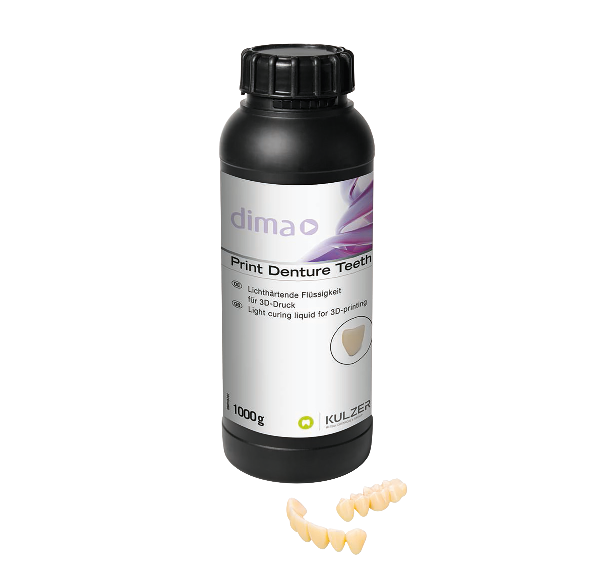 Light-curing Class IIa liquid for 3D printing. Helps the user to create duplicate dentures in a fast, easy process to provide back-up dentures for travel or emergencies, for example. Fast production time of just under 2 hours. 3D fabrication process is easy to learn and to teach colleagues. For cara printer users, allowing use of a known and secure process to fabricate a fully digital denture with minimal effort. Produces exceptionally precise results.