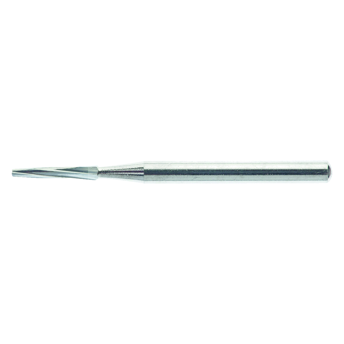 Tungsten carbide bur, nickel plated to protect against corrosion and to provide a firm grip in the handpiece chuck.
