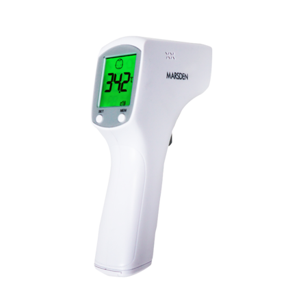 Easy-to-use digital infrared thermometer - simply point the thermometer at the forehead and press the button for a quick temperature reading. Stores the last 32 measurements and measures in °C or °F. No contact and handheld, with a clear digital reading. Measure distance: 3-5cm.