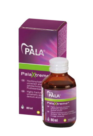 High-impact self-curing denture acrylic for special applications, such as implant-based dentures. Core shell technology minimises the risk of fractures. Works excellently with pouring or injection techniques due to its high viscosity. Helps to prevent impact damage and therefore avoids time-consuming warranty repairs. Contains a very low level of residual monomers (1.4%).