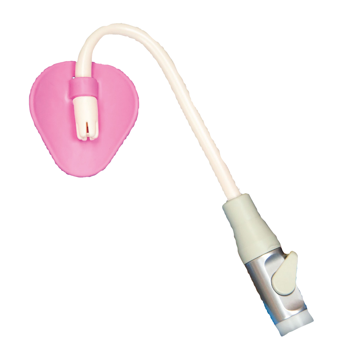 Single-use saliva ejector holder which provides continuous, comfortable, hands-free suction with no additional attachments required. By placing on the buccal side, the Pink Petal confidently holds the saliva ejector in place in the back corner of the patient's mouth. Ideal for ultrasonic scaling and sealants. Easy to place. Latex-free.