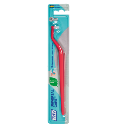 Innovative brush with the ideal angle for easy cleaning of implant abutments from the inside and other hard-to-reach areas. Extra-slim brush head reaches even very narrow areas. Great for back surfaces of the bottom front teeth. Long, soft, rounded bristles ensure gentle cleaning.