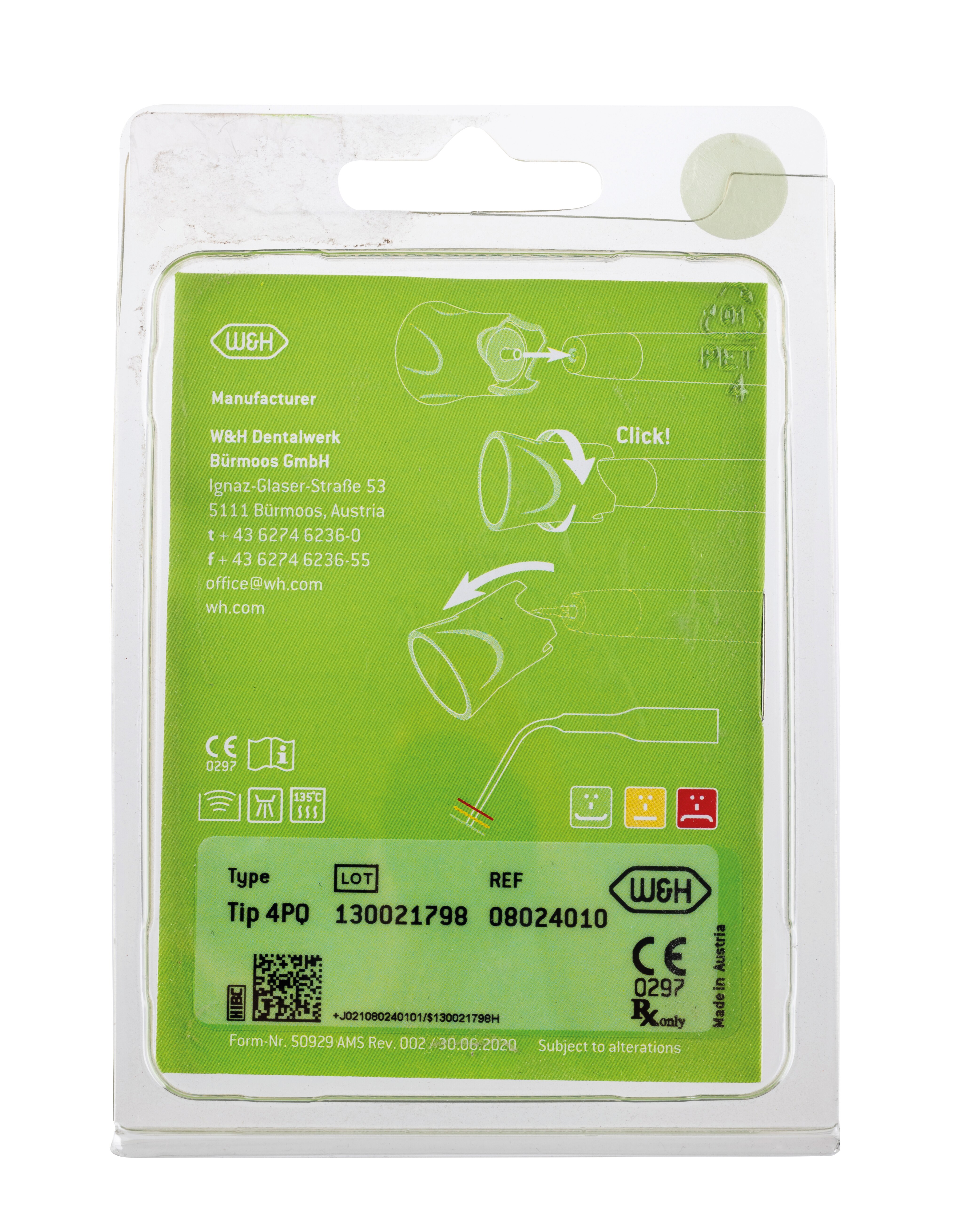 Enhanced piezo scaler tip range including different tips for prophylaxis and periodontology, endodontics, implantology, and restoration and prosthetics. Diamond-coated tip for cleaning the?root surface.