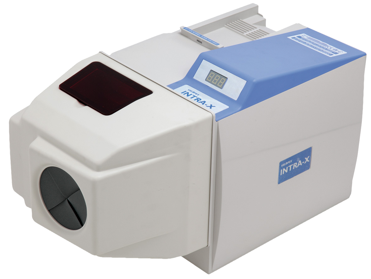 Express dry-to-dry processing of all oral films. Provides high-quality dry X-ray films from child size intraoral to occlusal size in just 4 minutes. Comes complete with daylight loader - does not require a darkroom. Simple to operate and maintain. To clean, fill sink with 90% water to 10% bleach, place in the first 3 modules and tanks, and submerge with the gear sections facing downwards into the solution. Scrub the tanks with a small brush or cloth and wipe down the side panels of the modules and gear sections, avoiding the nylon belts. Leave to soak overnight or over a weekend before rinsing off with cold water. Dry tanks and modules, avoiding the nylon belts, then place modules/tanks back in the machine and fill with fresh chemistry.